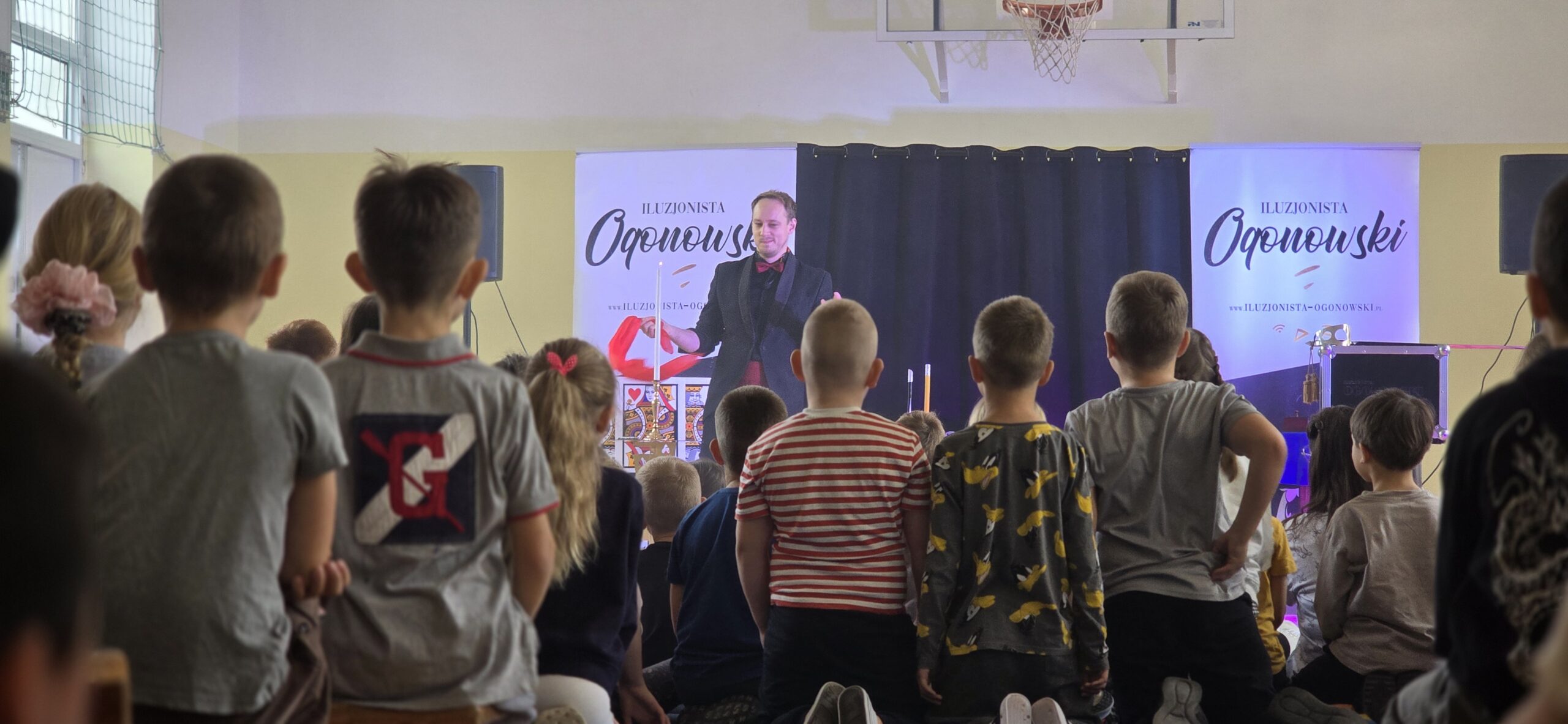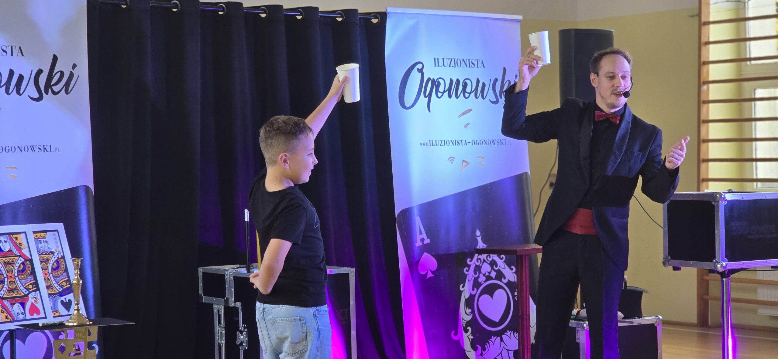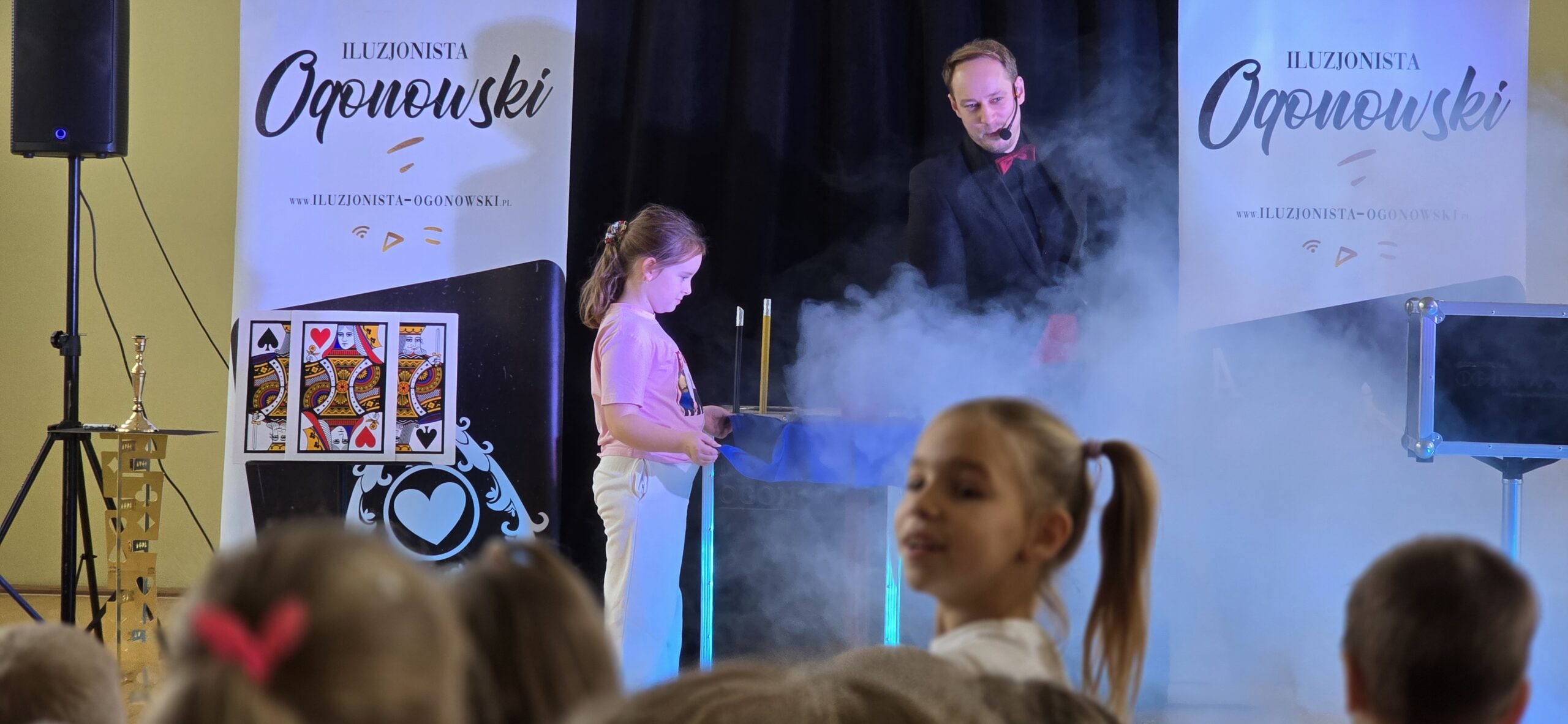 Do naszej szkoły zawitał dziś światowej sławy iluzjonista. Uczniowie klas 0-3 mogli podziwiać niezwykłe pokazy magii oraz kunsztu iluzjonisty. Pokazy odbywały się w niezwykłej scenerii, w atmosferze radości i zaciekawienia. Niektórzy uczniowie próbowali swoich sił i pod bacznym okiem magika mogli samodzielnie „coś wyczarować”. Zabawa była świetna, a uczniowie z uśmiechem na twarzy pożegnali się z iluzjonistą.