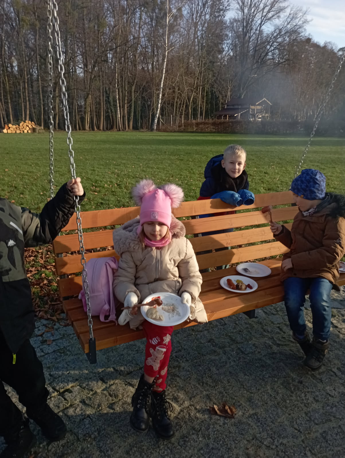 z Mikołajem i otrzymało świąteczny upominek. Na zakończenie odbyło się wspólne pieczenie kiełbasek przy ognisku. Spotkanie wprowadziło wszystkich w magiczny nastrój zbliżających się Świąt Bożego Narodzenia.