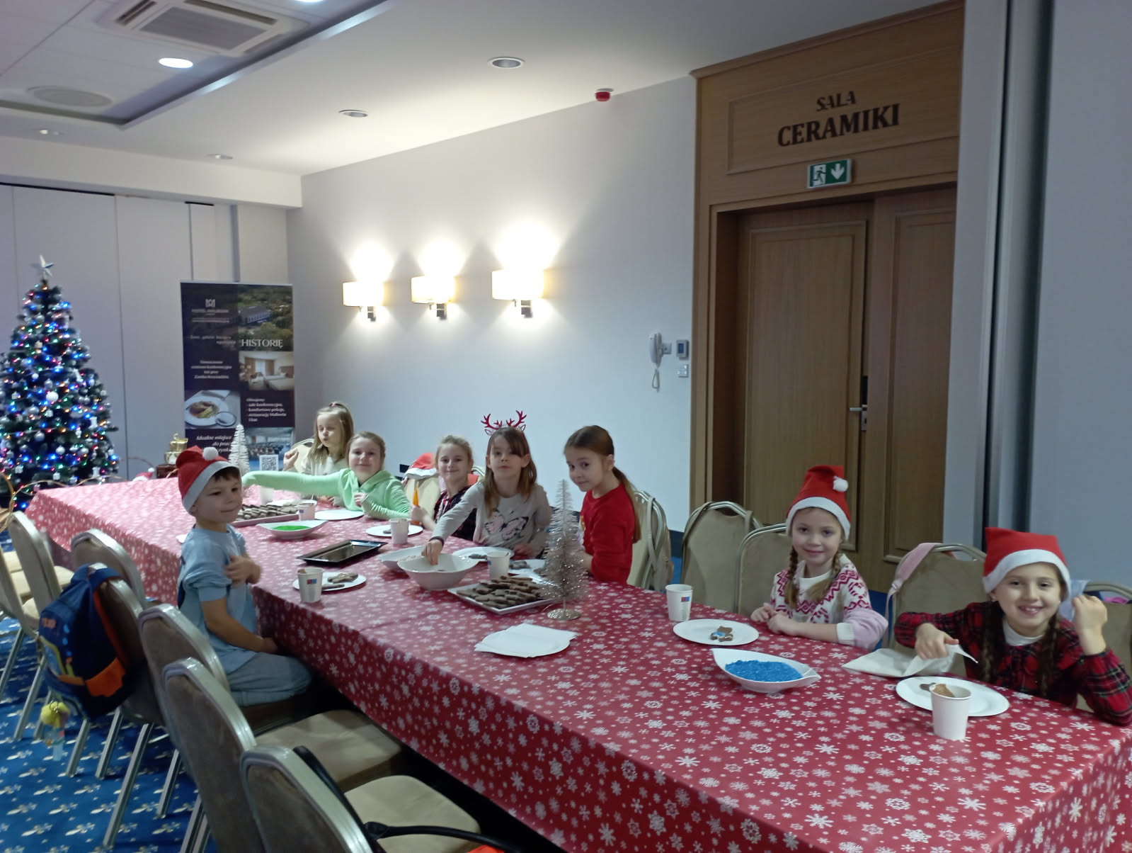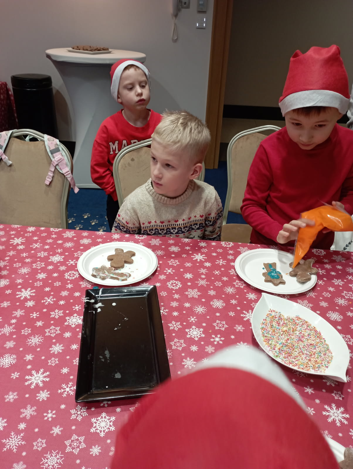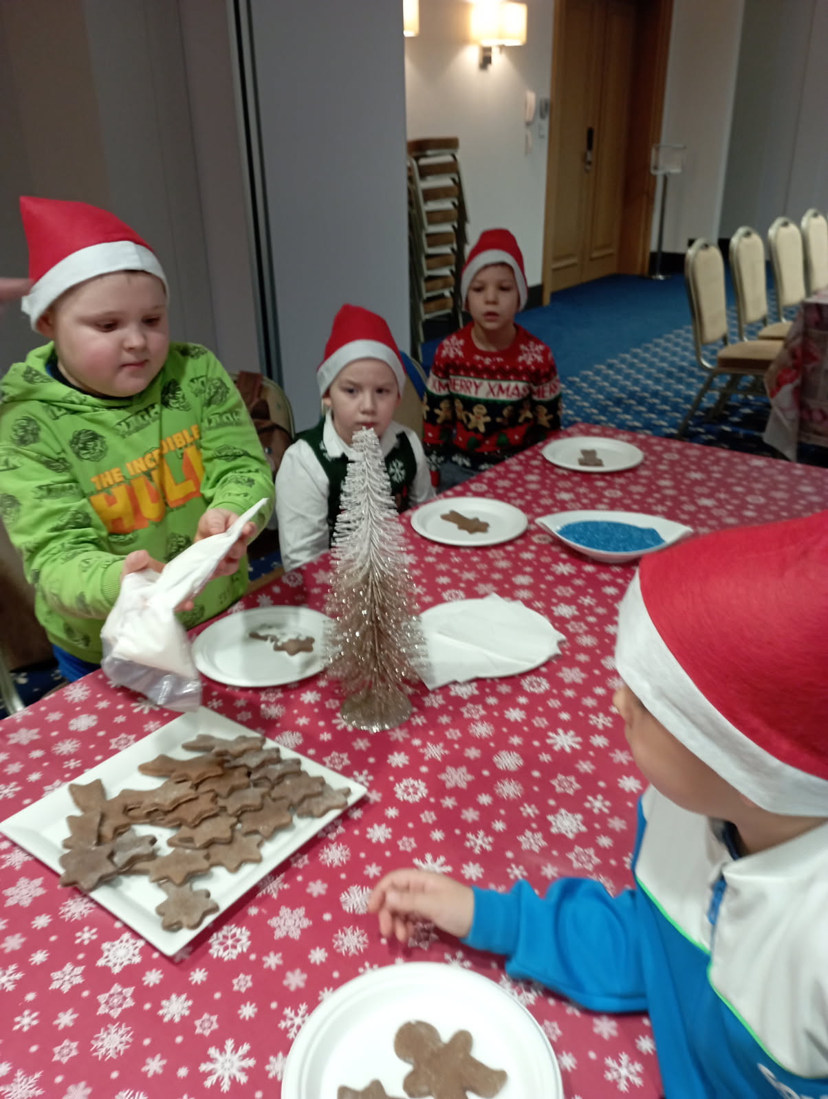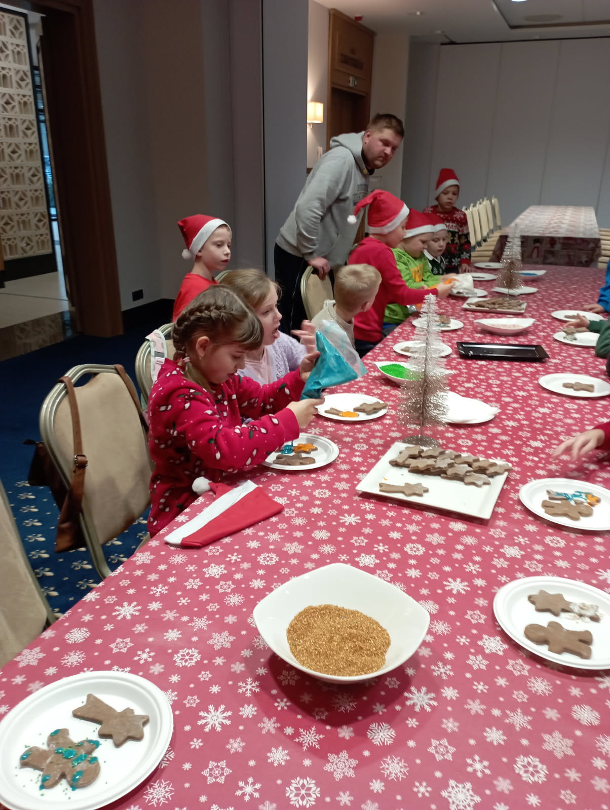 W dniu 09.12.2025 r. uczniowie klasy 1B uczestniczyli w spotkaniu z Mikołajem w Hotelu Malbork. Dekoracja świątecznych pierniczków była cudowną zabawą. Niespodzianką okazała się gorąca czekolada. Każde dziecko miało możliwość krótkiej rozmowy