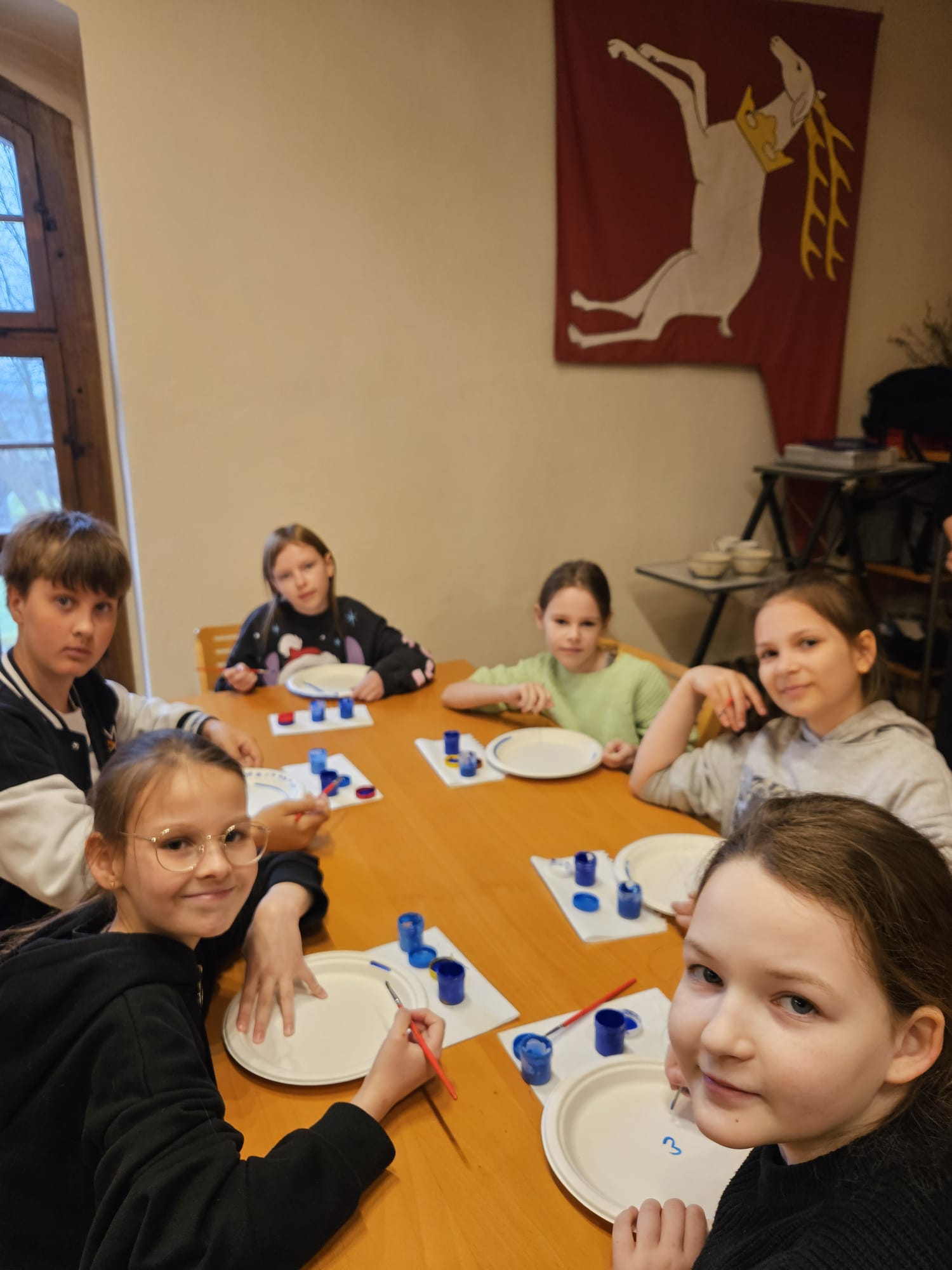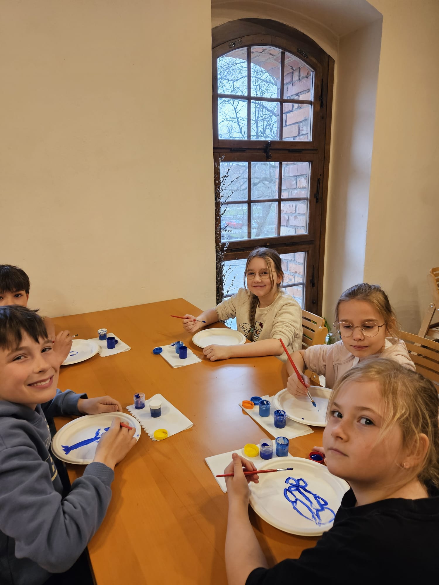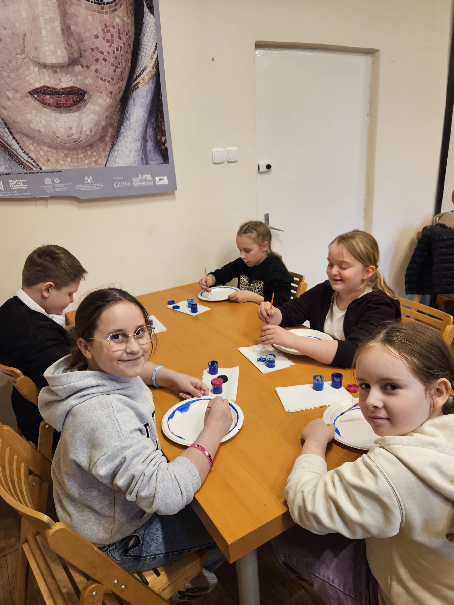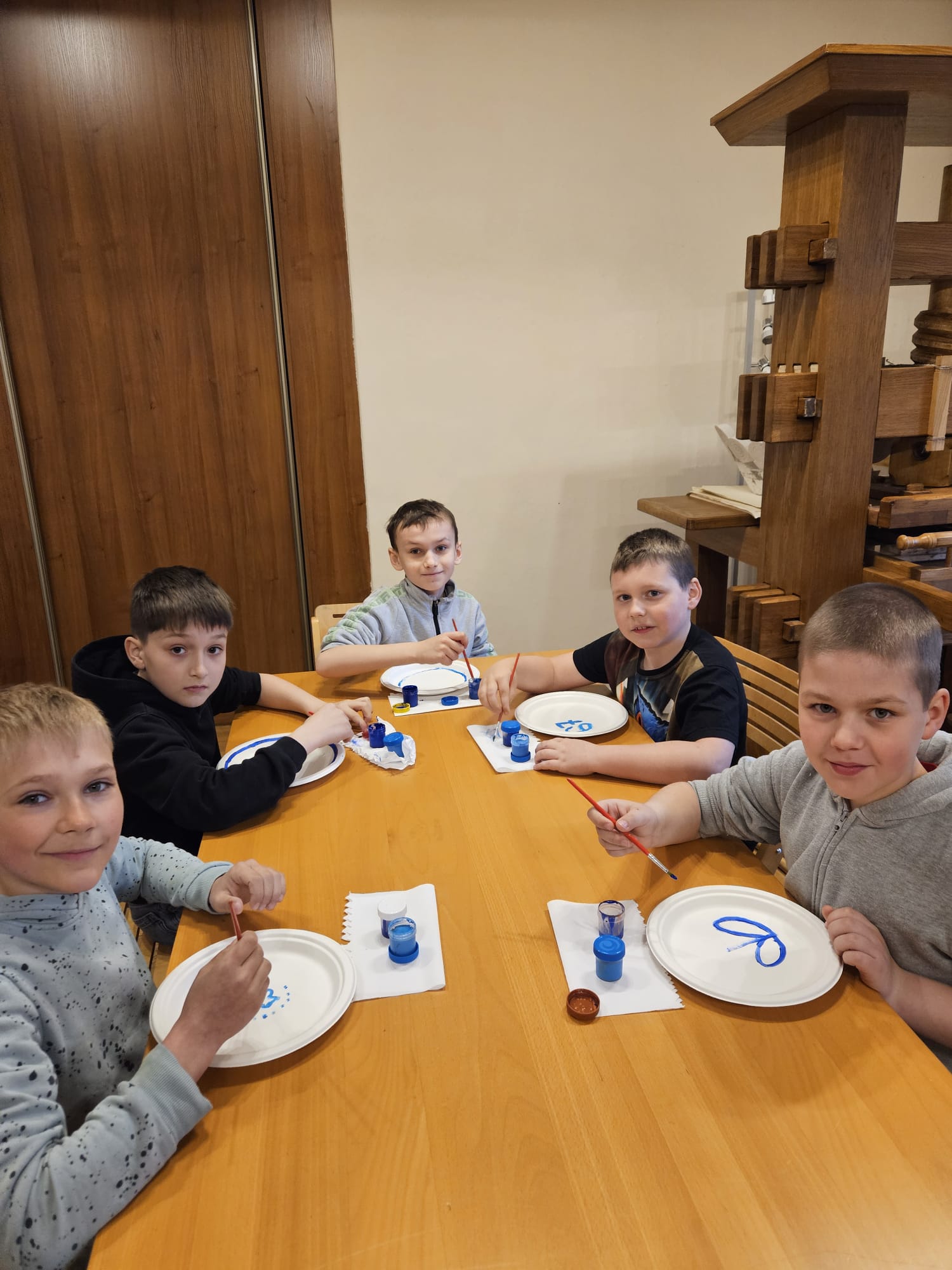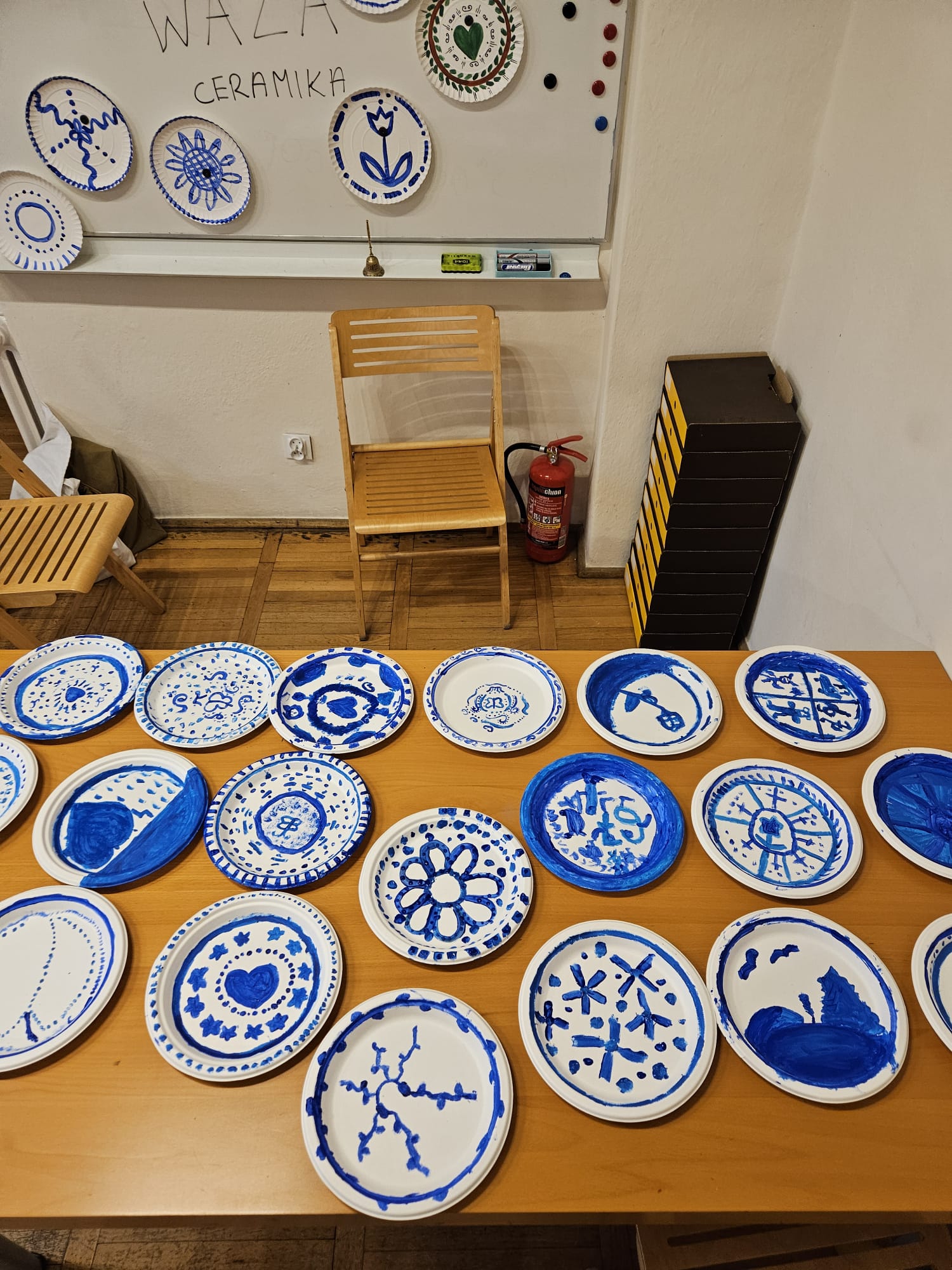 W czasie warsztatów manualnych pomalowaliśmy talerze według własnej wyobraźni. Będą zdobiły naszą klasę