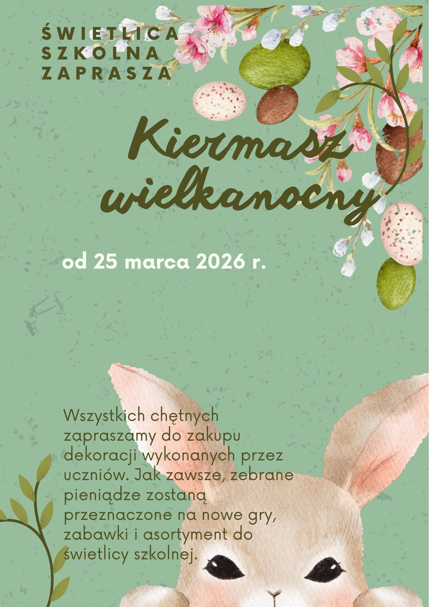 Zapraszamy na kiermasz Wielkanocny ZAPRASZAMY NA KIERMASZ WIELKANOCNY Podziel się tym postem Karolina Siwko2026-03-27T08:35:55+01:00